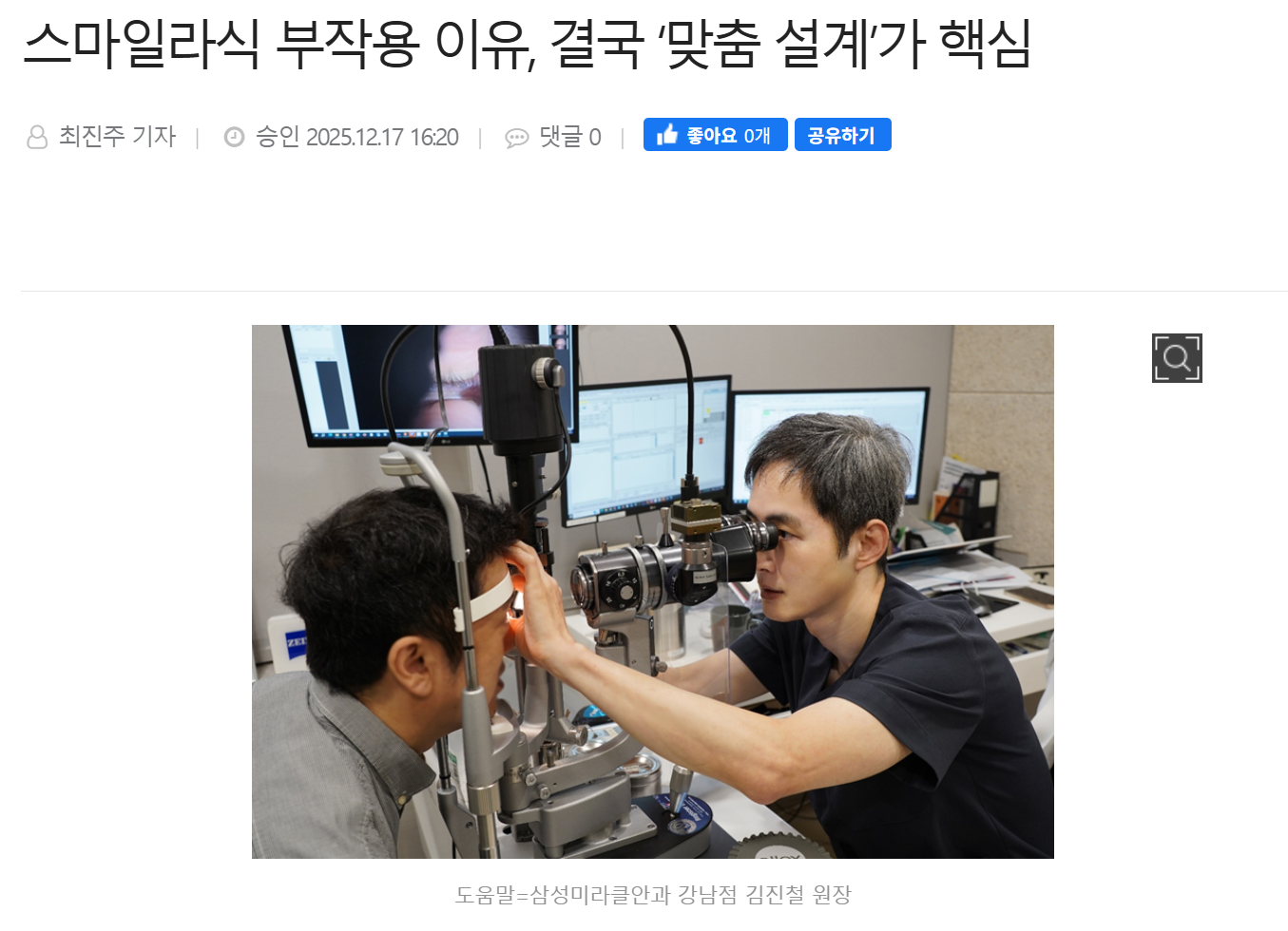 삼성미라클안과 강남점 김진철 원장은 “같은 장비로 같은 스마일라식을 해도, 환자의 각막 특성과 생활 환경에 따라 어떻게 설계했느냐에 따라 결과는 크게 달라진다”고 말했다.