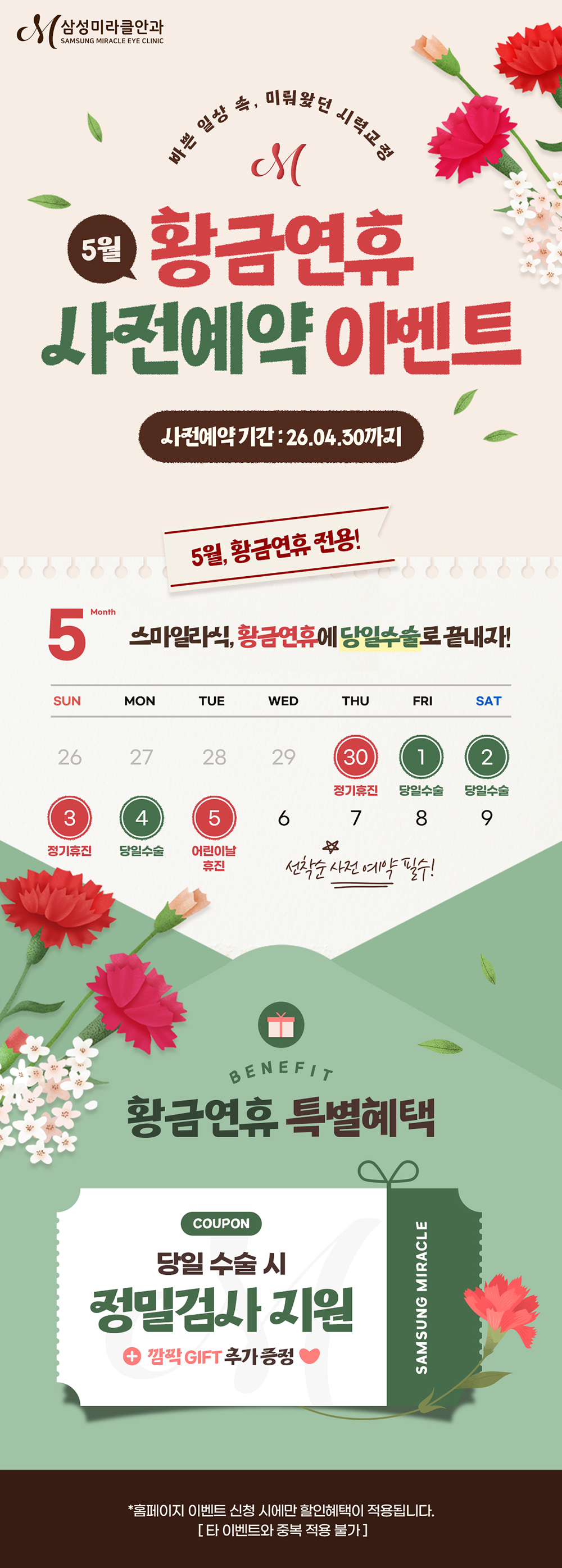 5월 황금연휴 사전예약 이벤트 미뤄왔던 시력교정, 황금연휴에 당일수술로 끝내자!