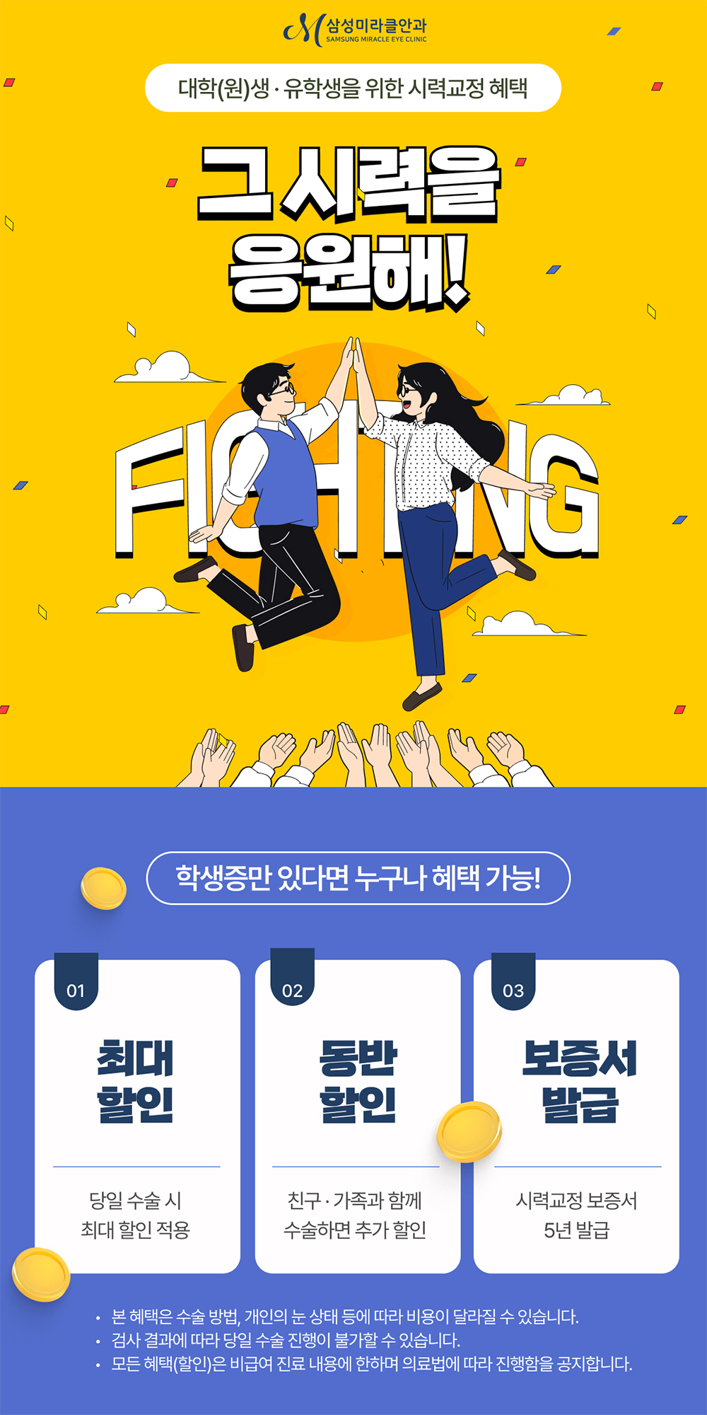 대학생 유학생 할인 이벤트 당일 수술 시 할인! 정밀 검사비 FREE